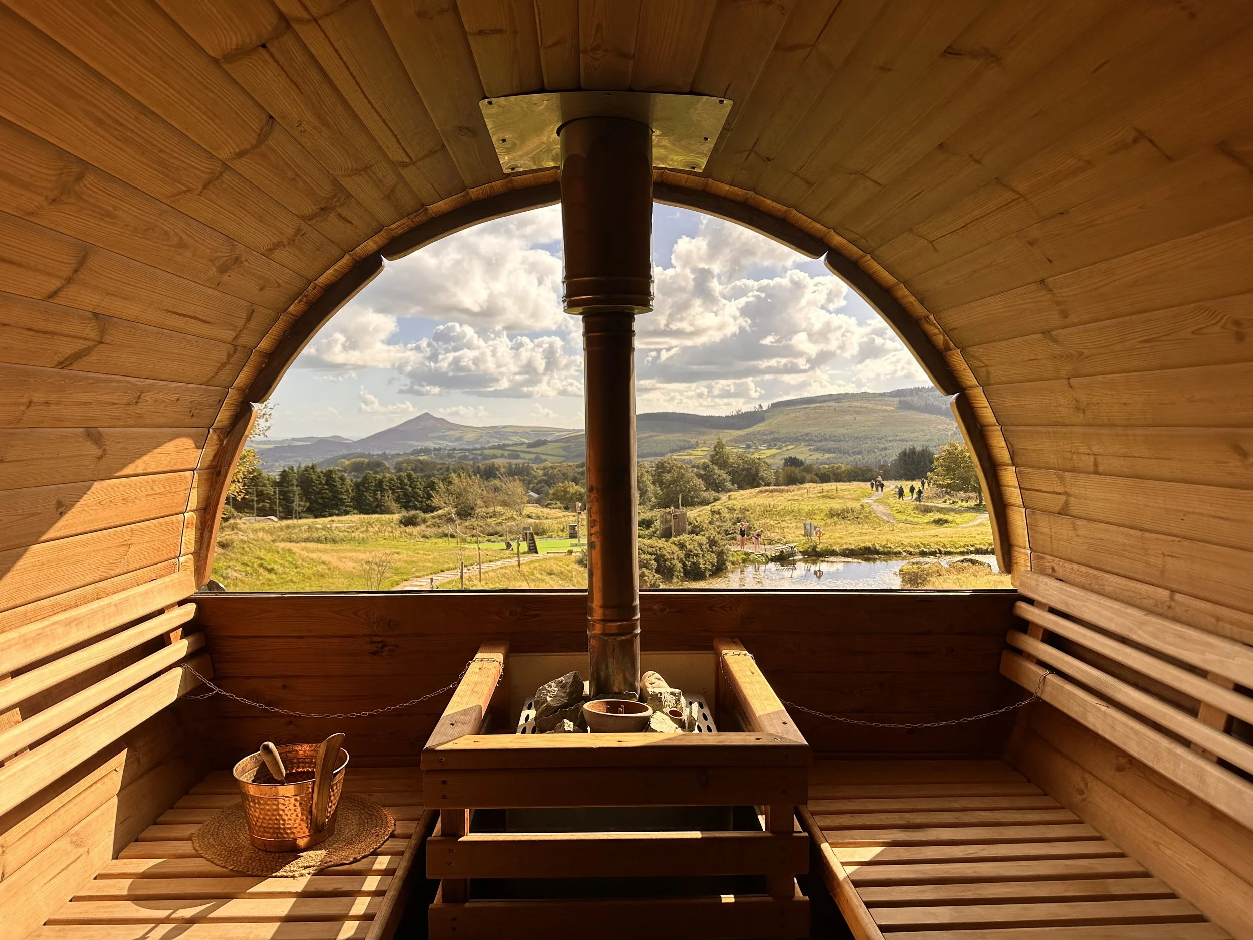 The session lasts 2 hours and includes 1 hour of yoga, 60 minutes in the barrel sauna, and the option of a cold plunge or a refreshing dip in the pond.